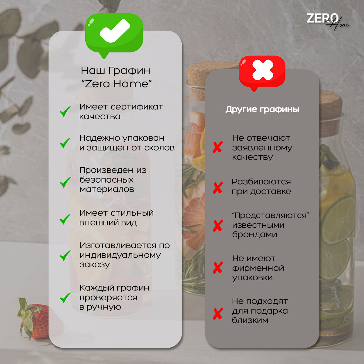 Графин для воды Zero Home с крышкой, боросиликатное стекло, 1 л интересное: