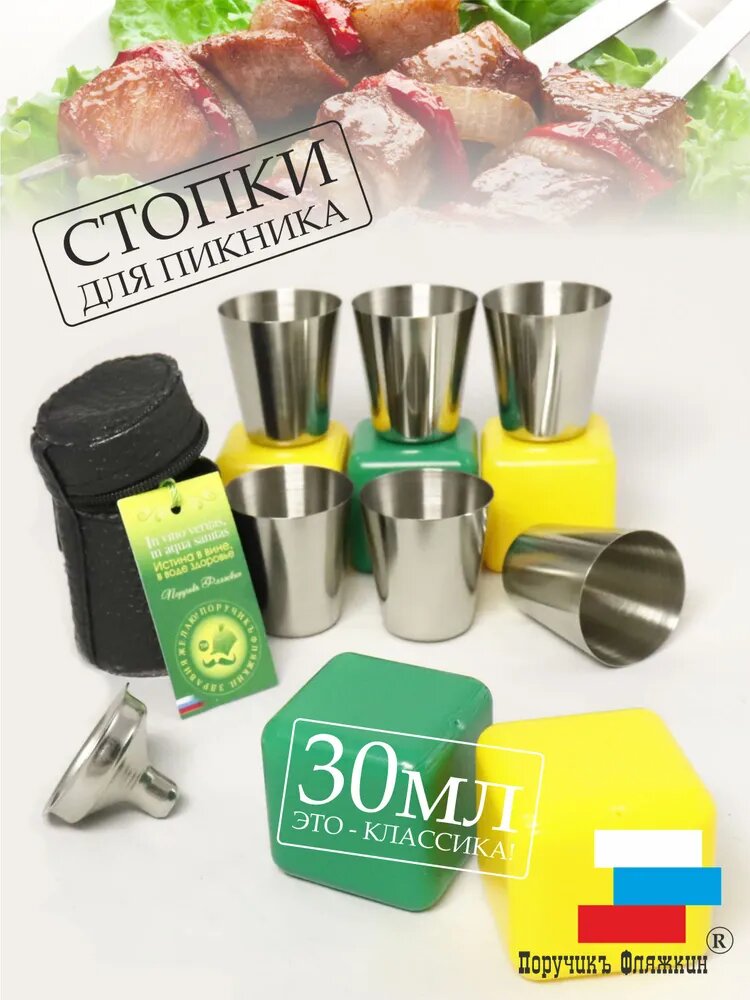 Стопки металлические 30мл, 6шт и воронка в чехле. ПоручикЪ Фляжкин интересное: