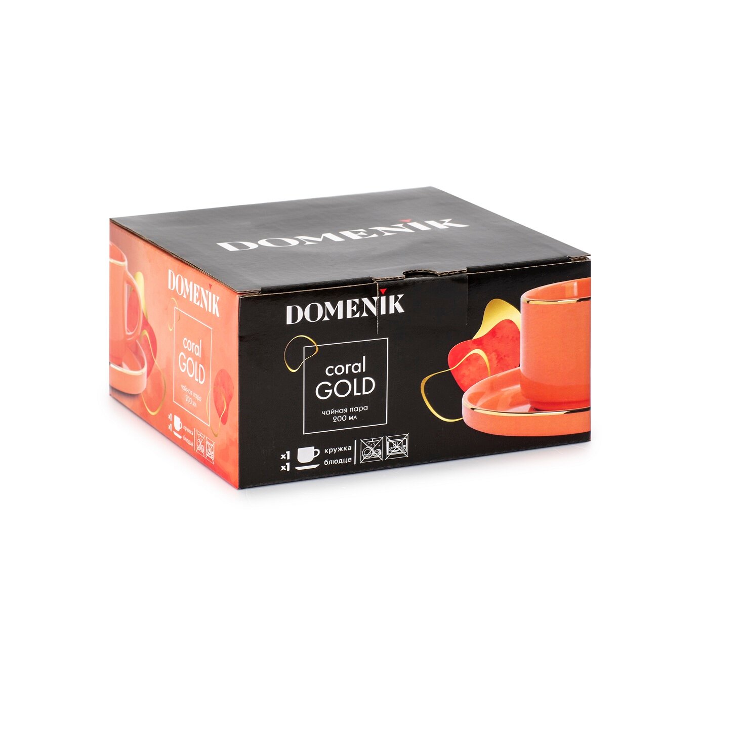 Чайная пара Domenik CORAL GOLD 200мл, 2 предмета, фарфоровая интересное: