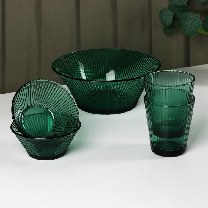 Набор посуды «Верде», 2 стакана 330 мл, 2 тарелки 280 мл, салатник 1,6 л, стеклянной, цвет зелёный