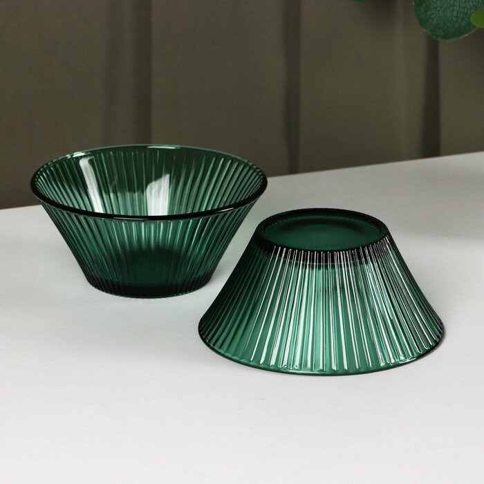 | Комплектация | Набор стеклянной посуды «Верде», 5 предметов: 2 стакана 330 мл, 2 тарелки 280 мл, салатник 1,6 л, цвет зелёный |
