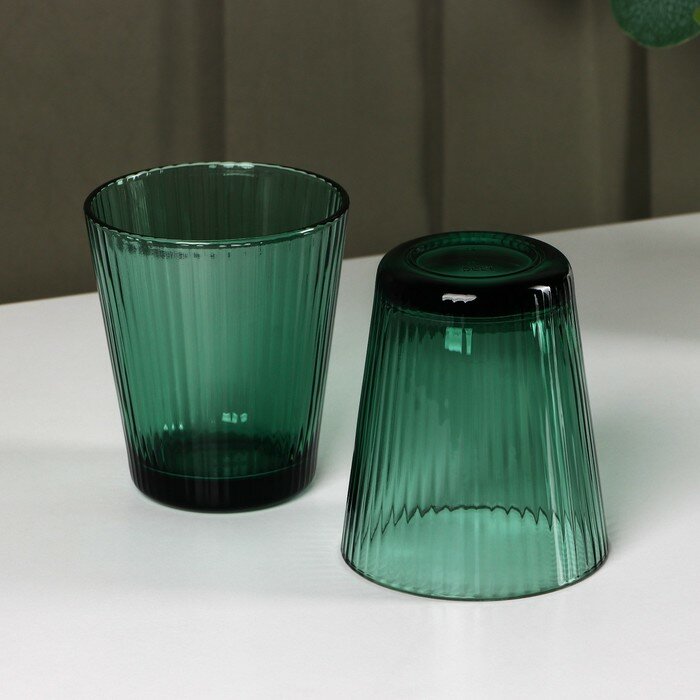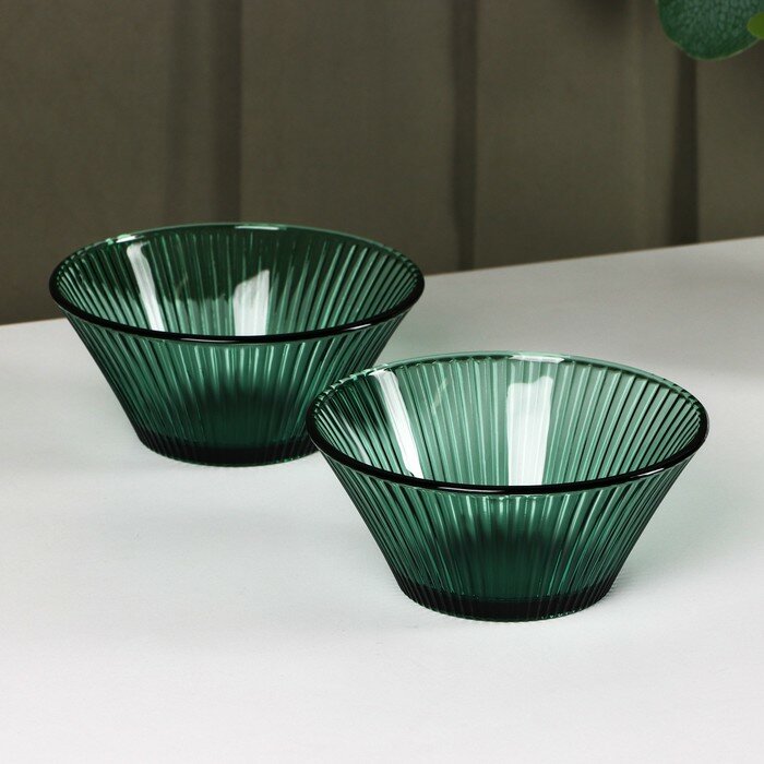 Купить Набор стеклянной посуды «Вино Верде», 5 предметов: 2 стакана 330 мл, 2 тарелки 280 мл, салатник 1,6 л, цвет зелёный