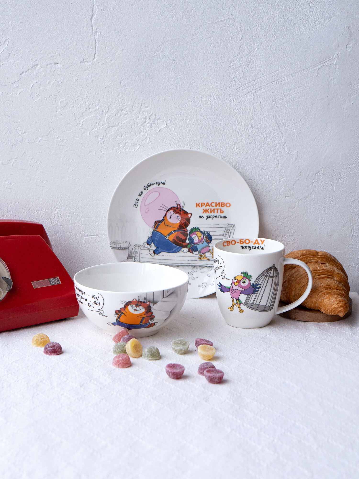 Купить Набор посуды на 1 персону 3 предмета фарфор "Попугай Кеша!" Коралл.
