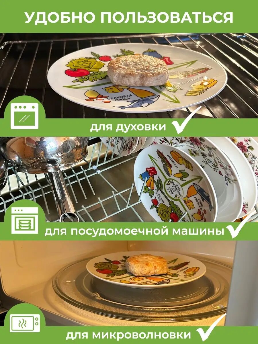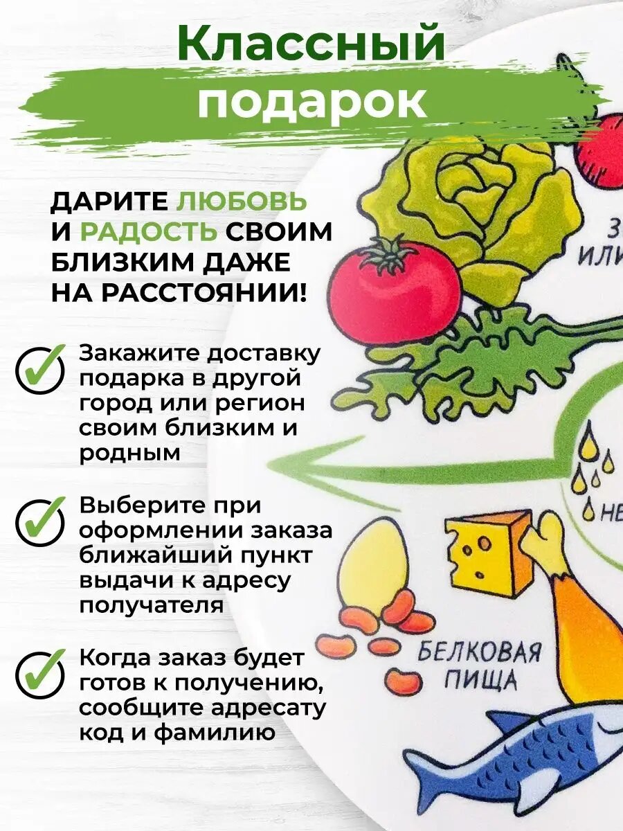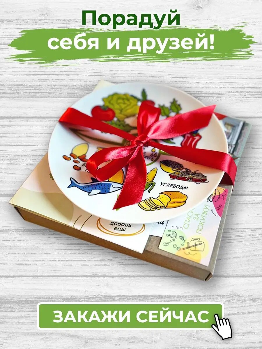 Тарелка для похудения и здорового питания, с инструкцией, белая, фарфор, 20см, АБ Сувениры интересное: