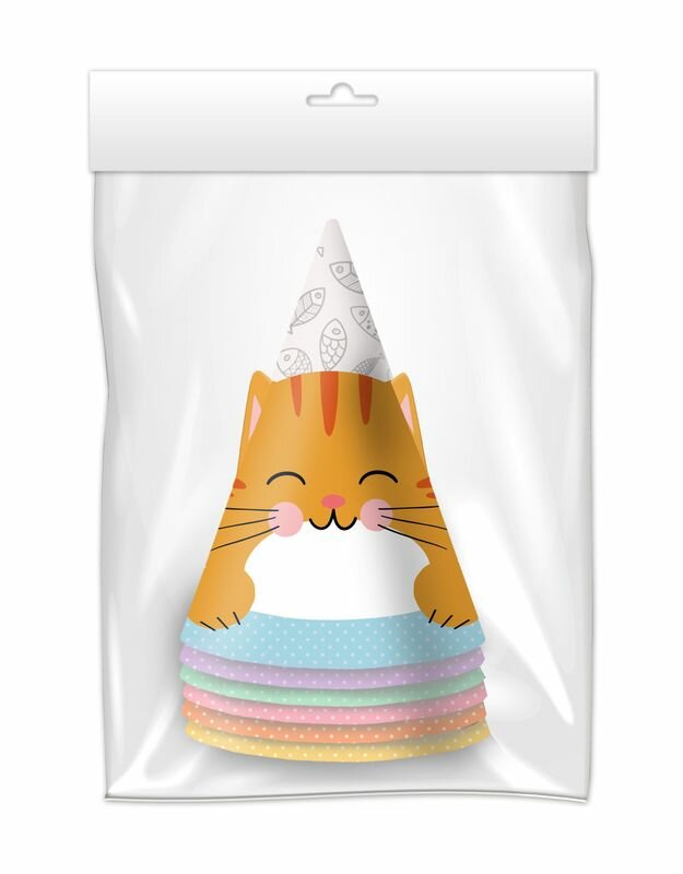 Купить Колпаки Riota "Кошки с ушками", бумага, картон, для гостей, разноцветные, 6 шт