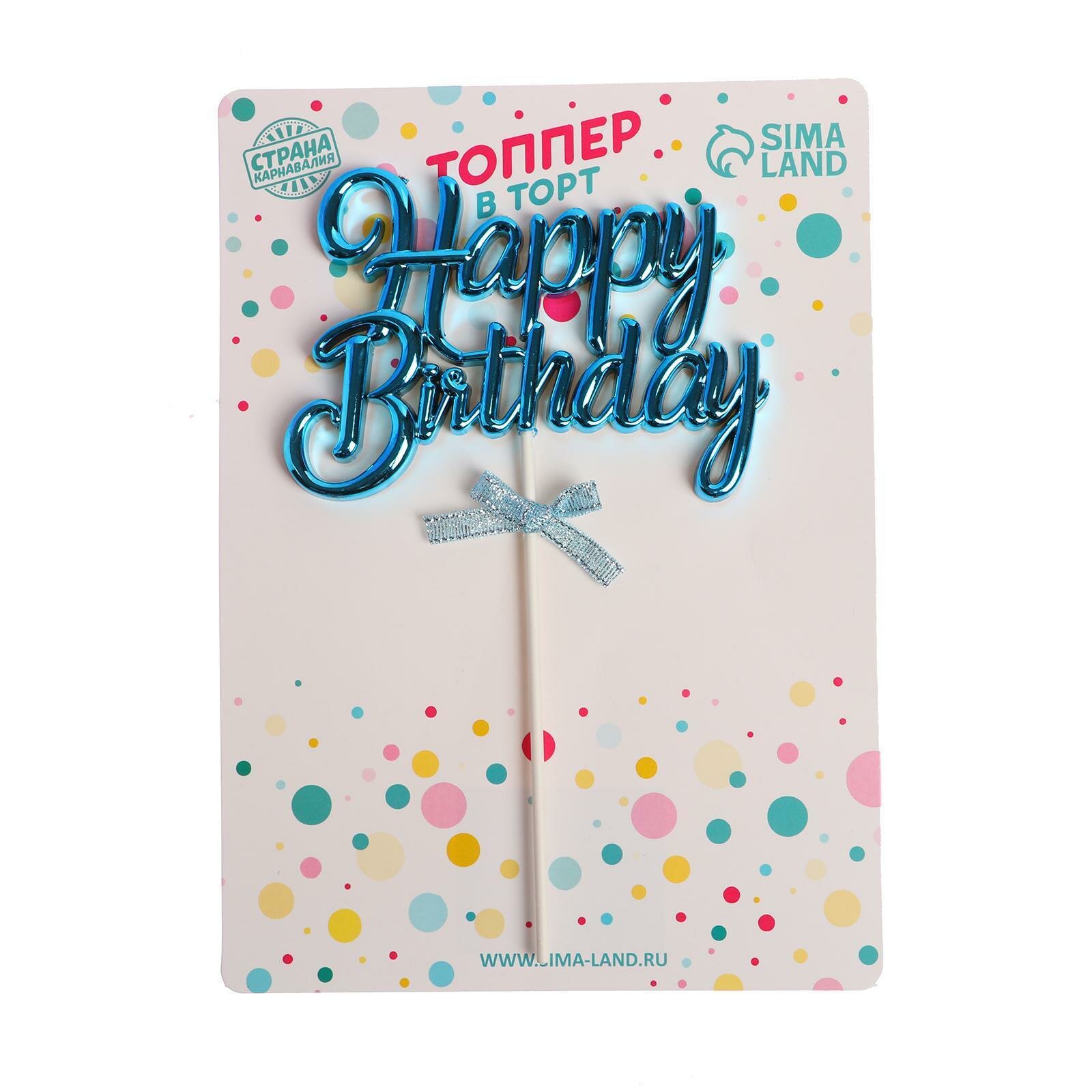 Топпер украшение для торта Страна Карнавалия "С Днём Рождения" цвет голубой интересное: