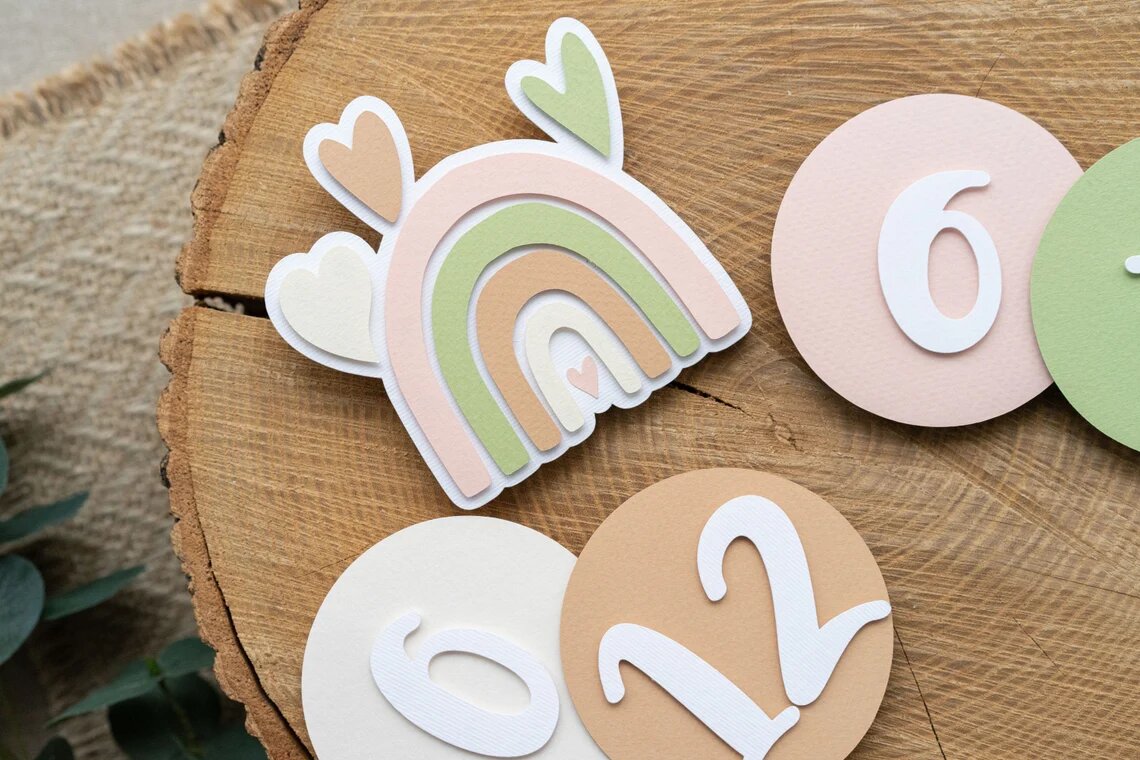 Растяжка гирлянда для фото по месяцам на детский день рождения яркая радуга