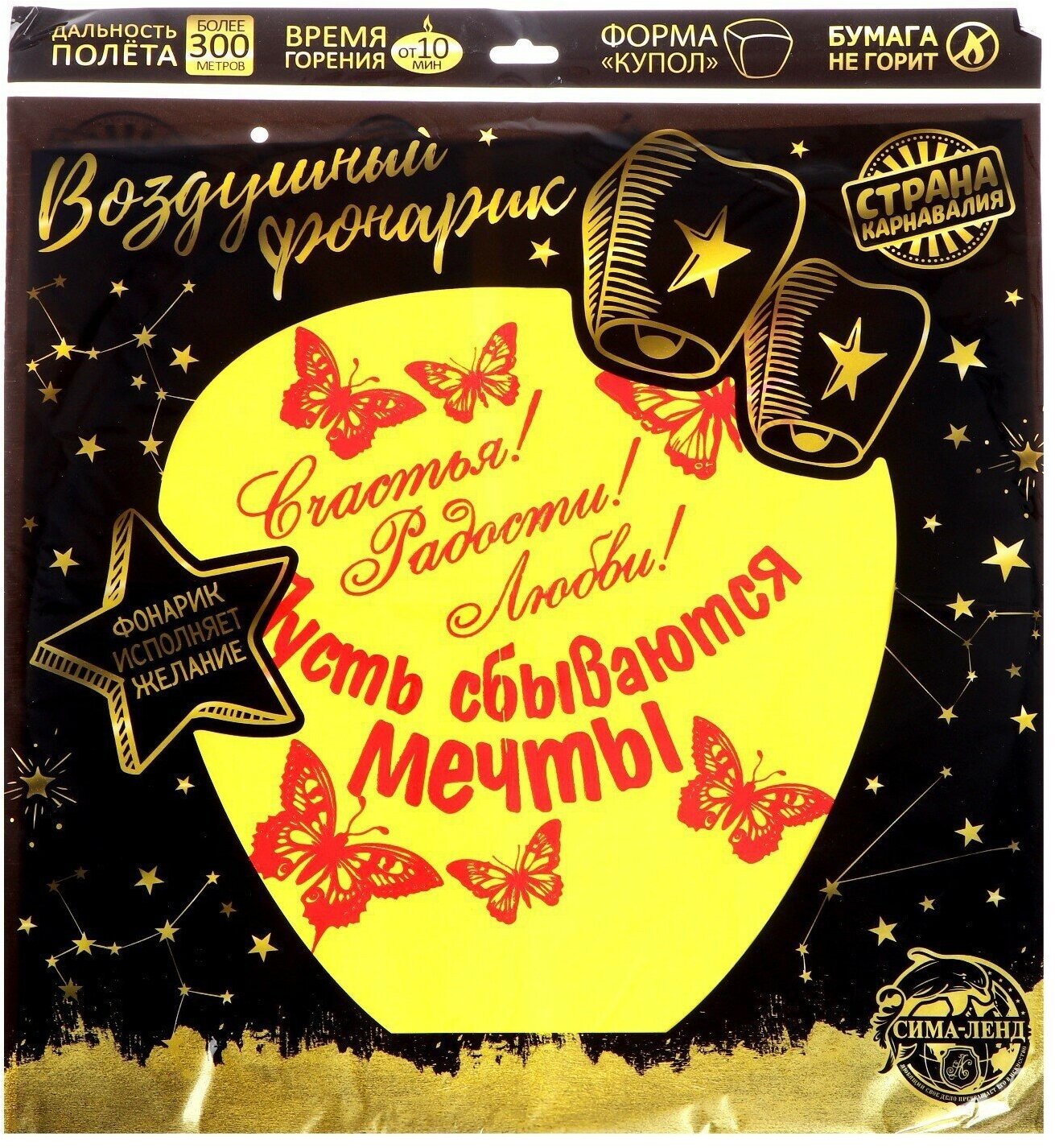 Купить Фонарик желаний "Счастья! Радости! Любви!", размер 36 см, цвета микс