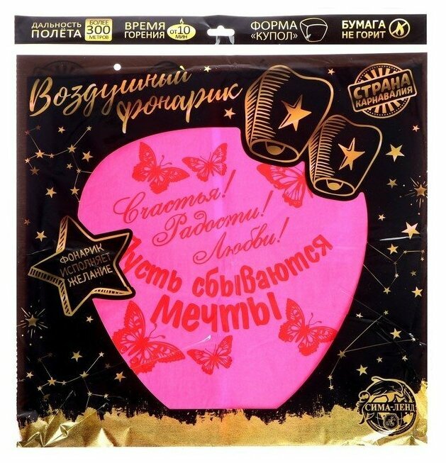 Ниже Вы можете прочитать отзывы на Фонарик желаний "Счастья! Радости! Любви!", размер 36 см, цвета микс, ознакомится с подробными характеристиками, посмотреть интересные обзоры и фотографии на Фонарик желаний "Счастья! Радости! Любви!", размер 36 см, цвета микс.