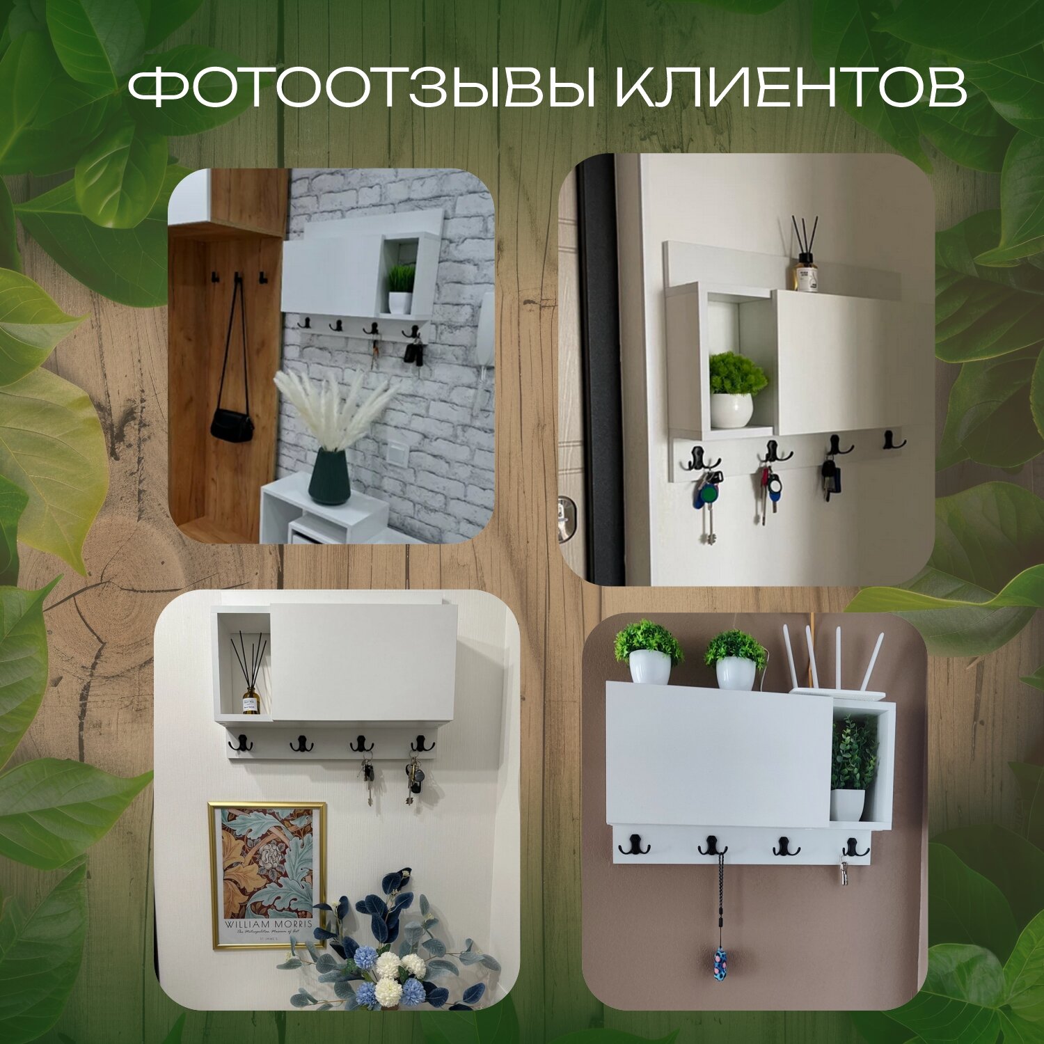 Ключница настенная в прихожую с полкой на щиток, деревянная для дома, белая