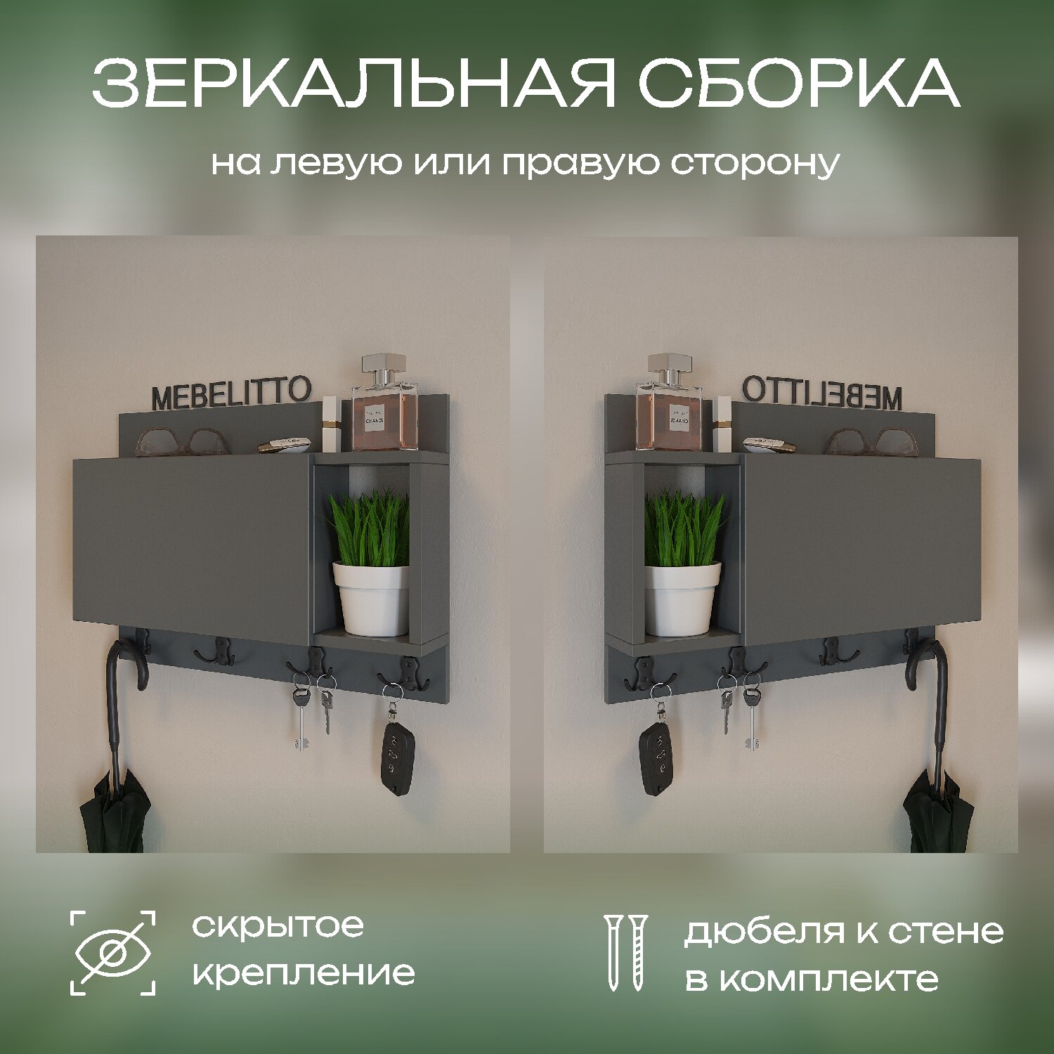Ключница "Хельсинки" настенная в прихожую деревянная на щиток Антрацит интересное: