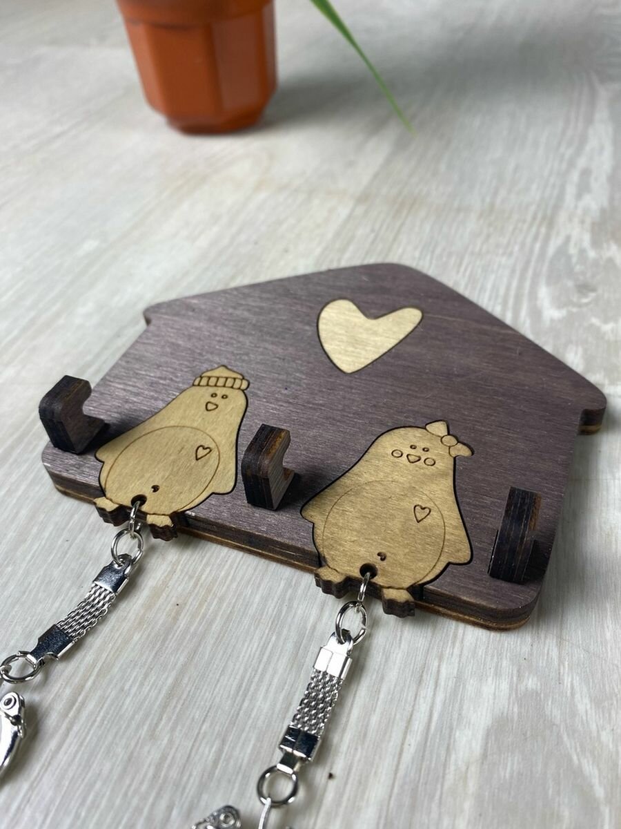 СохранитьКлючница настенная деревянная с брелками "Пингвины", цвет венге интересное: