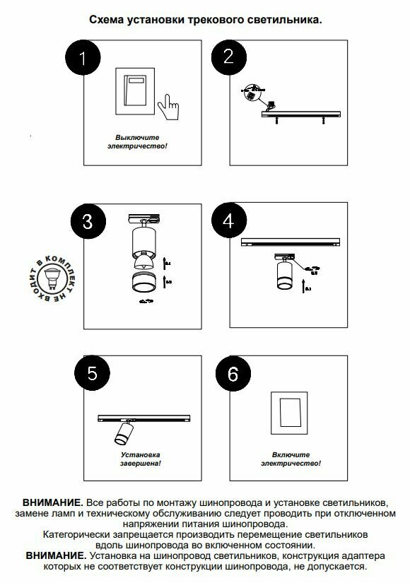 Светильник белый 370821 трековый однофазный трехжильный, провод 1м IP20 GU10 9W 220V GARN