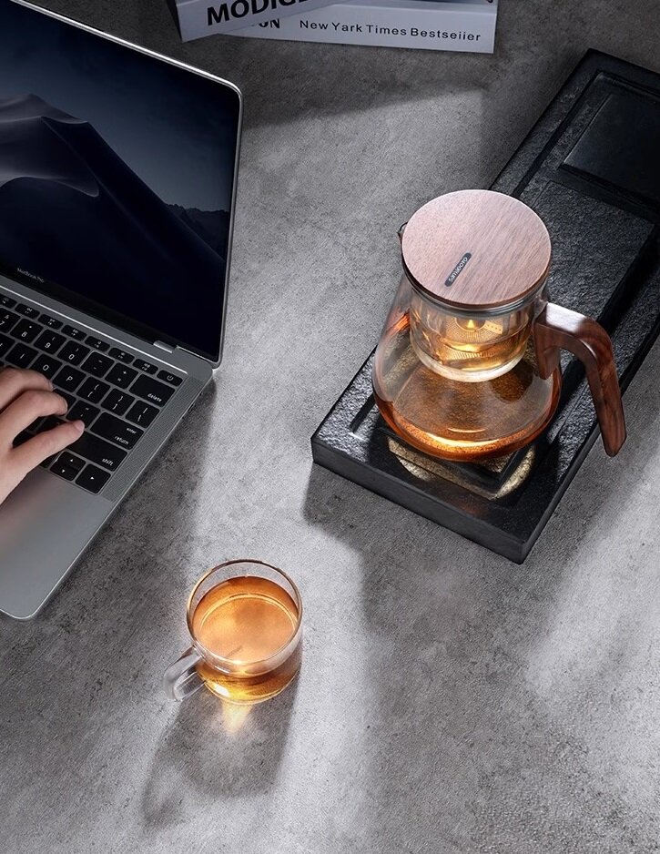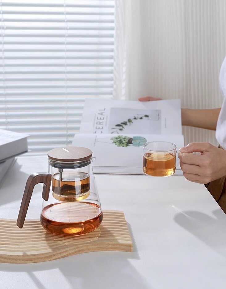 Стеклянный заварочный чайник Гунфу с кнопкой SAMADOYO 800 мл, Типод проливной Чайник для заваривания чая с фильтром ситечком, Заварочный магнитный чайник с крышкой и ручкой из дерева