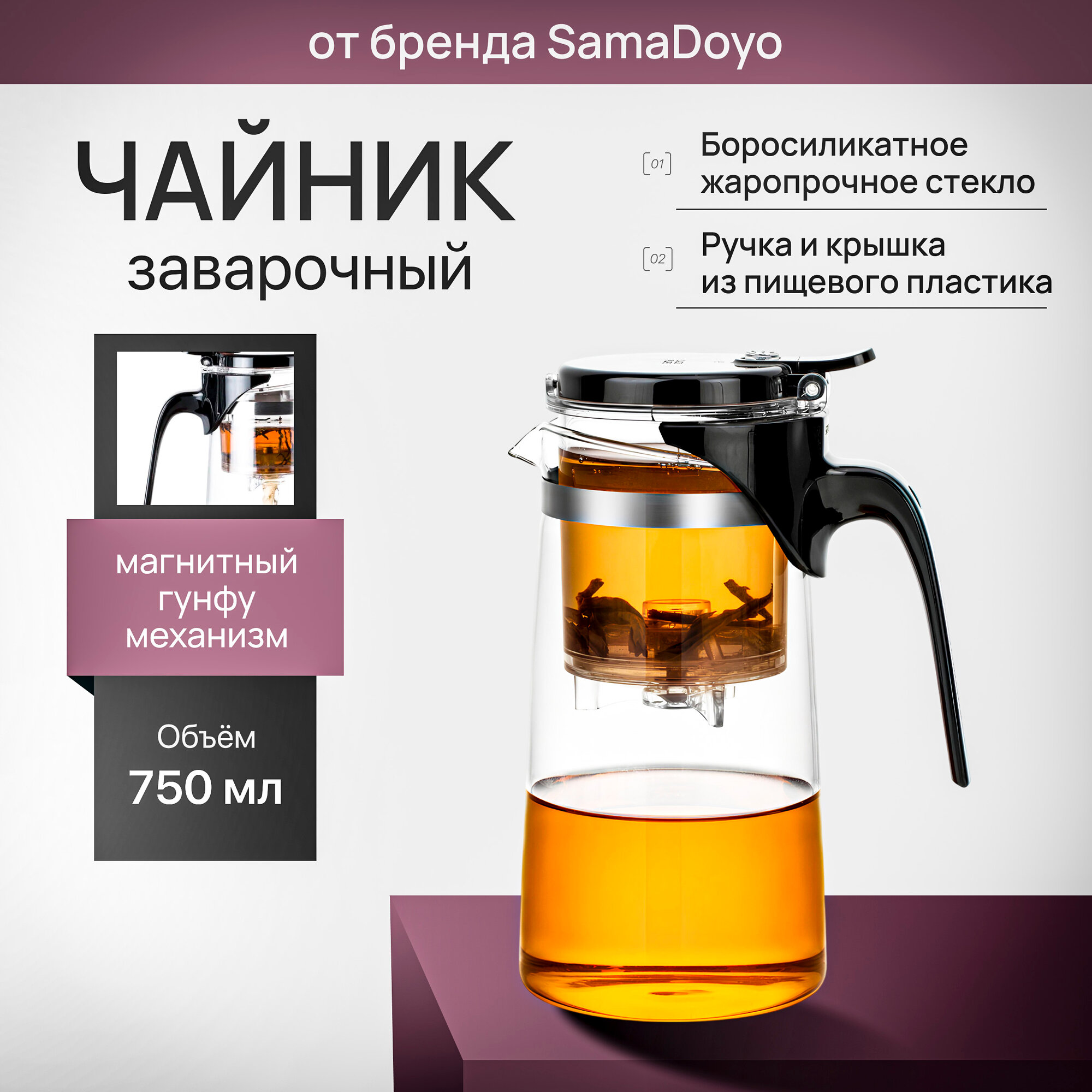 Чайник заварочный гунфу типот с кнопкой SamaDoyo из боросиликатного стекла SAG 10, 750 мл интересное: