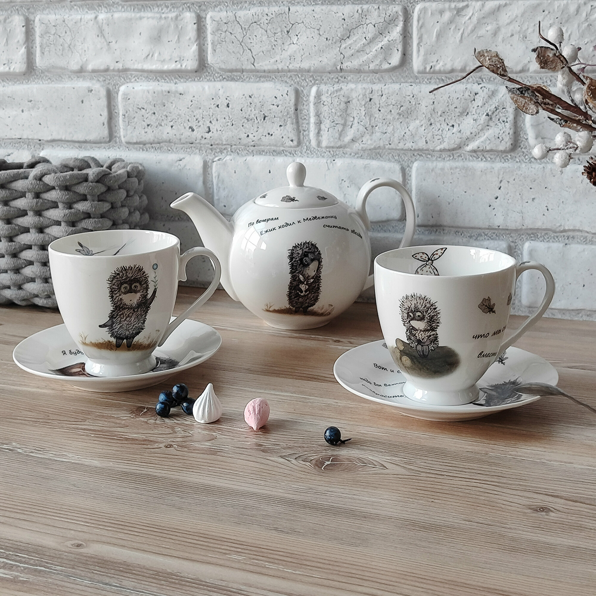Чайник заварочный 1.2 л , фарфор, подарочная упаковка "Ёжик в тумане" Коралл интересное: