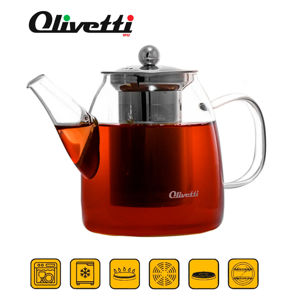 Купить Чайник заварочный 2 в 1 Olivetti GTK071 из термостойкого боросиликатного стекла, съемный металлический фильтр, 700 мл