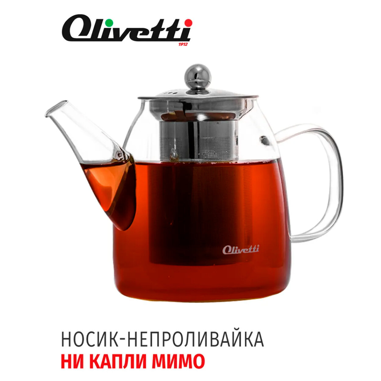 Чайник заварочный 2 в 1 Olivetti GTK071 из термостойкого боросиликатного стекла, съемный металлический фильтр, 700 мл интересное: