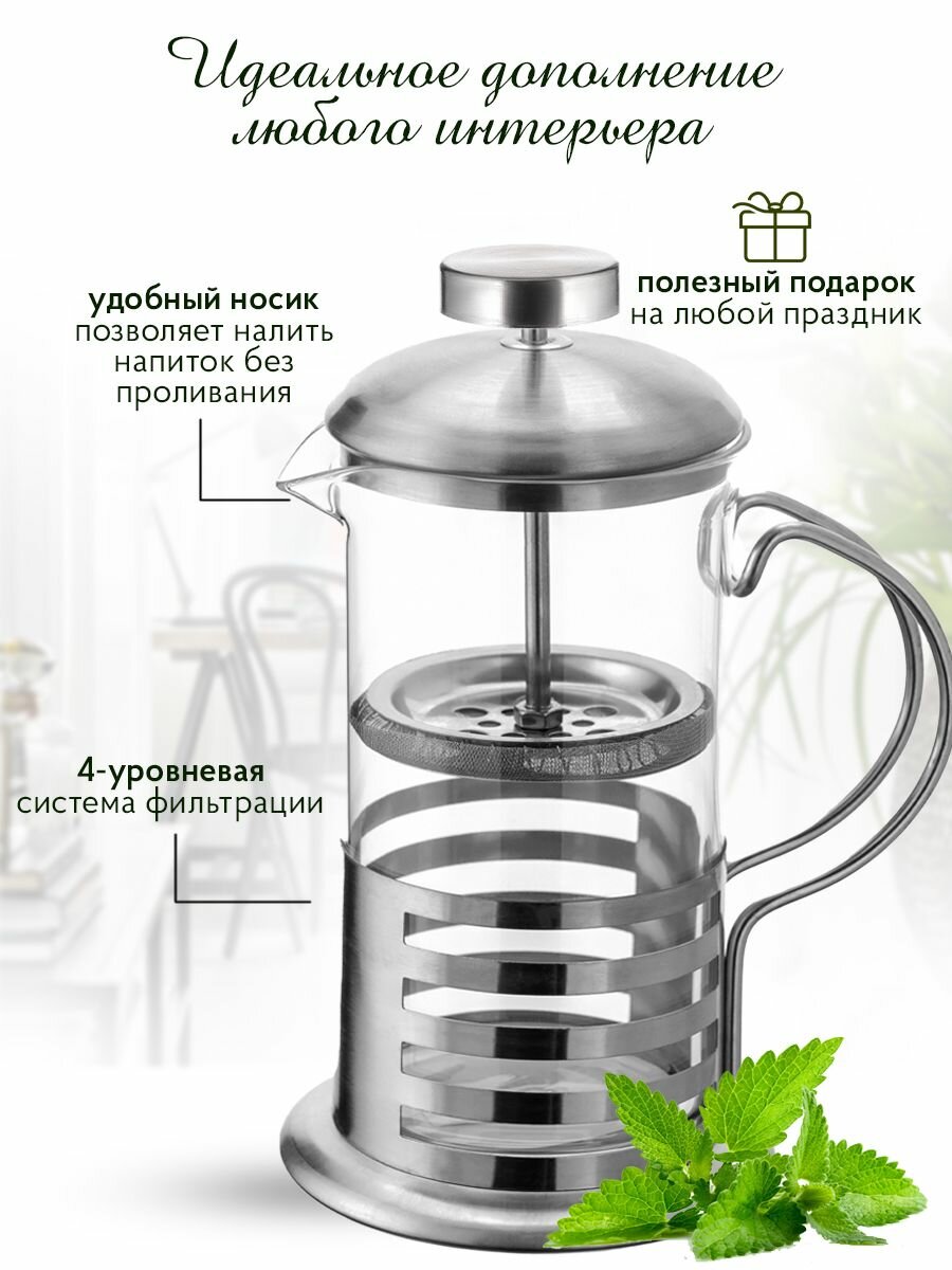 Стеклянный френч-пресс 350 мл, заварочный чайник со стеклянной колбой и прессом