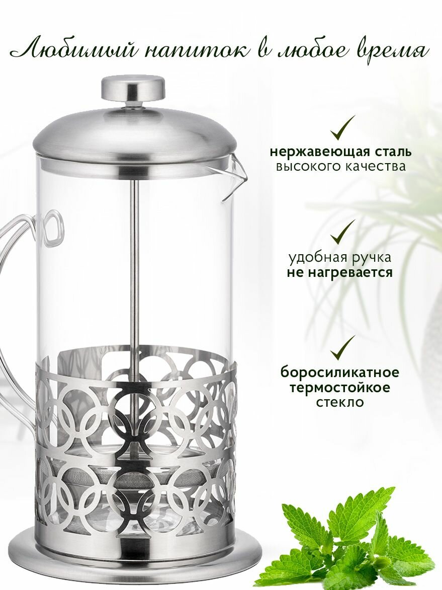 Стеклянный френч-пресс 350 мл, заварочный чайник со стеклянной колбой и прессом