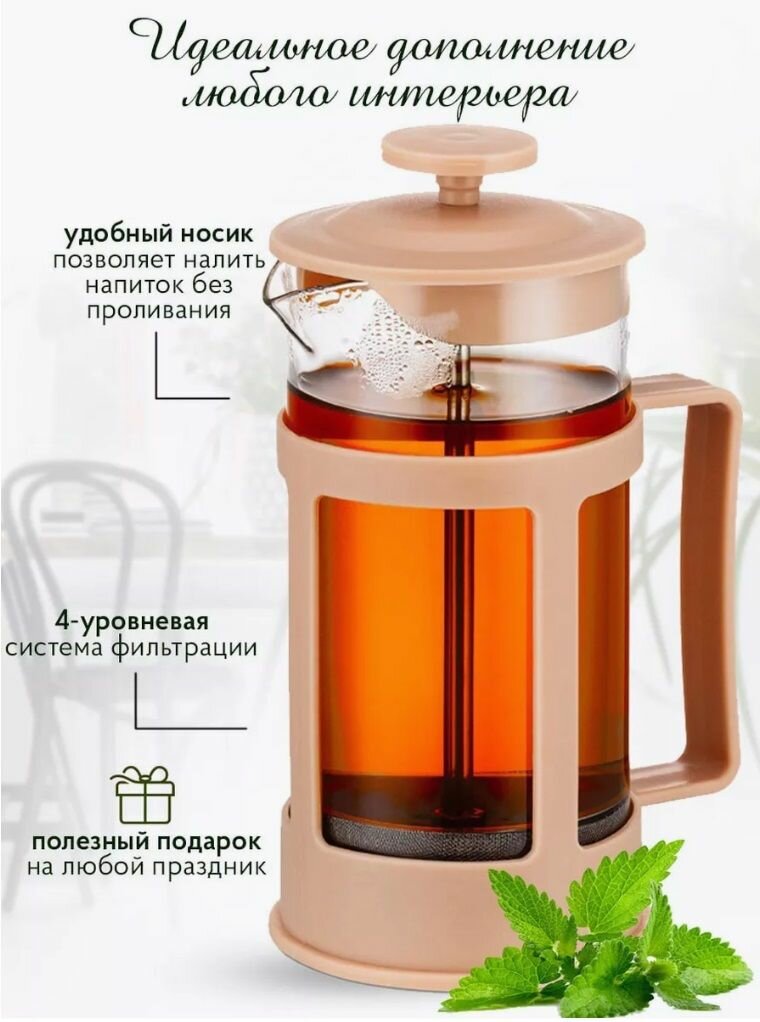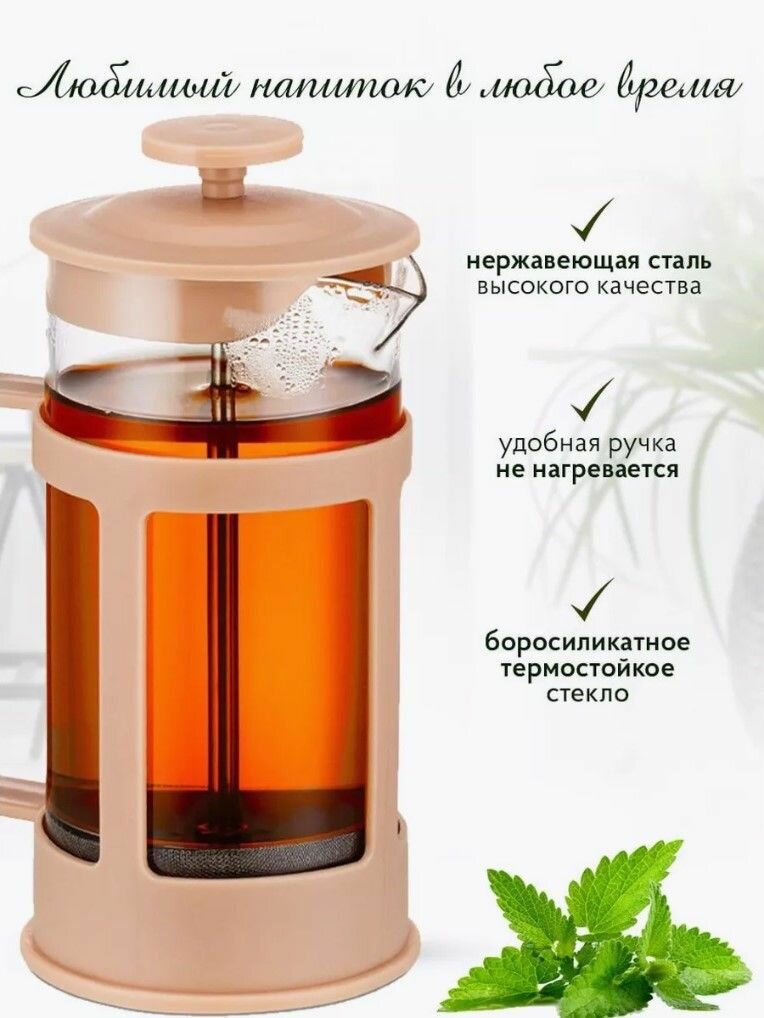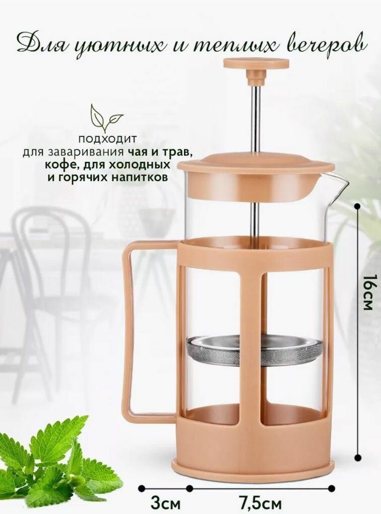 Стеклянный френч-пресс 350 мл заварочный чайник, бежевый