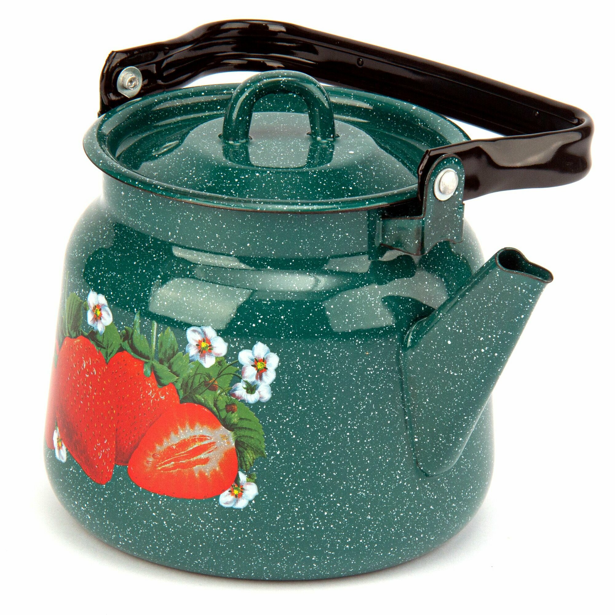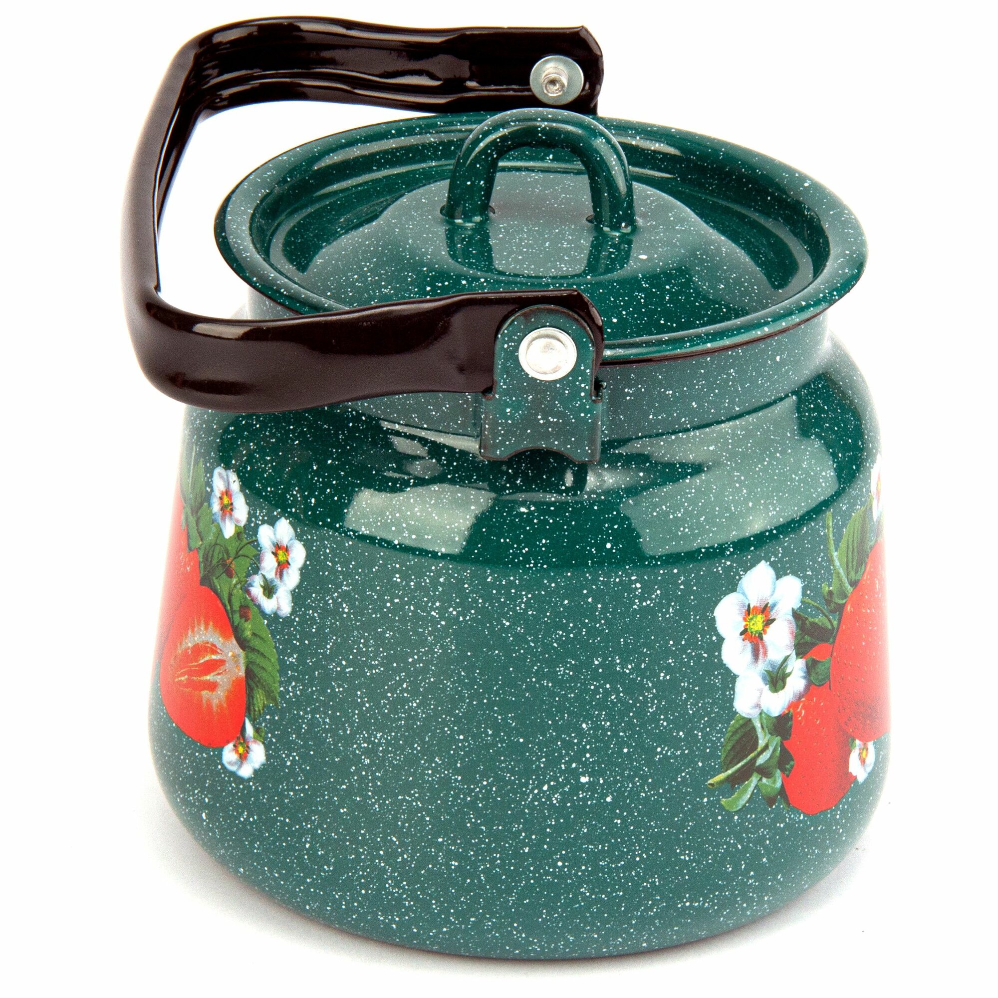 Чайник эмалированный 3,5 л без рисунка, закатанное дно, зеленый рябчик, для плиты и открытого огня