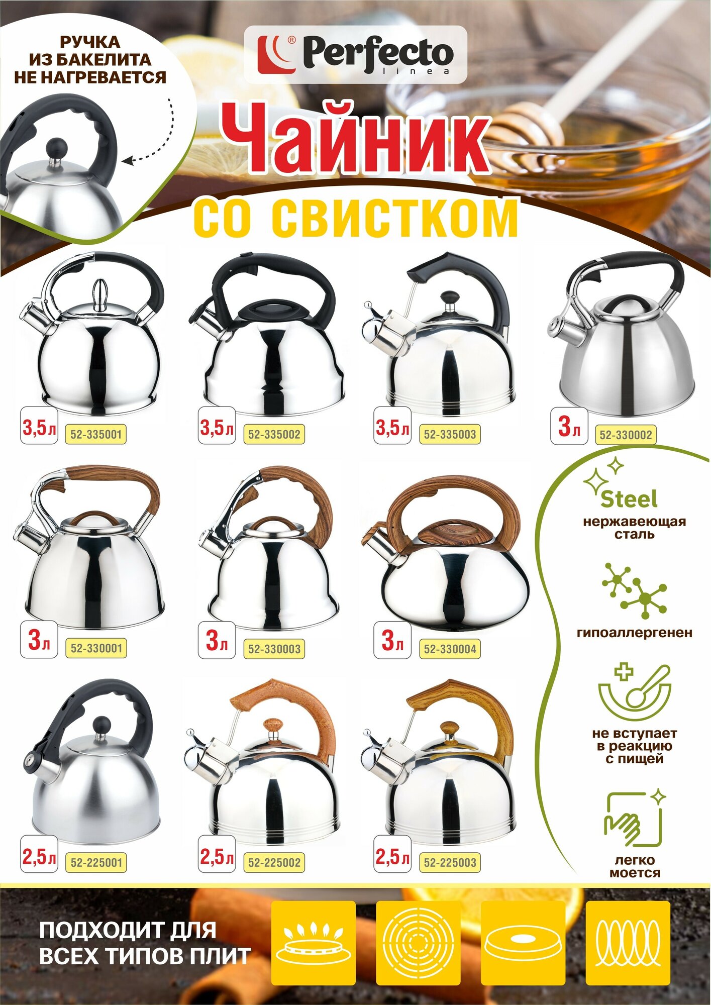 Чайник со свистком PERFECTO LINEA Rich Camomile 52-335002 3.5л, для газовой, индукционной плиты интересное: