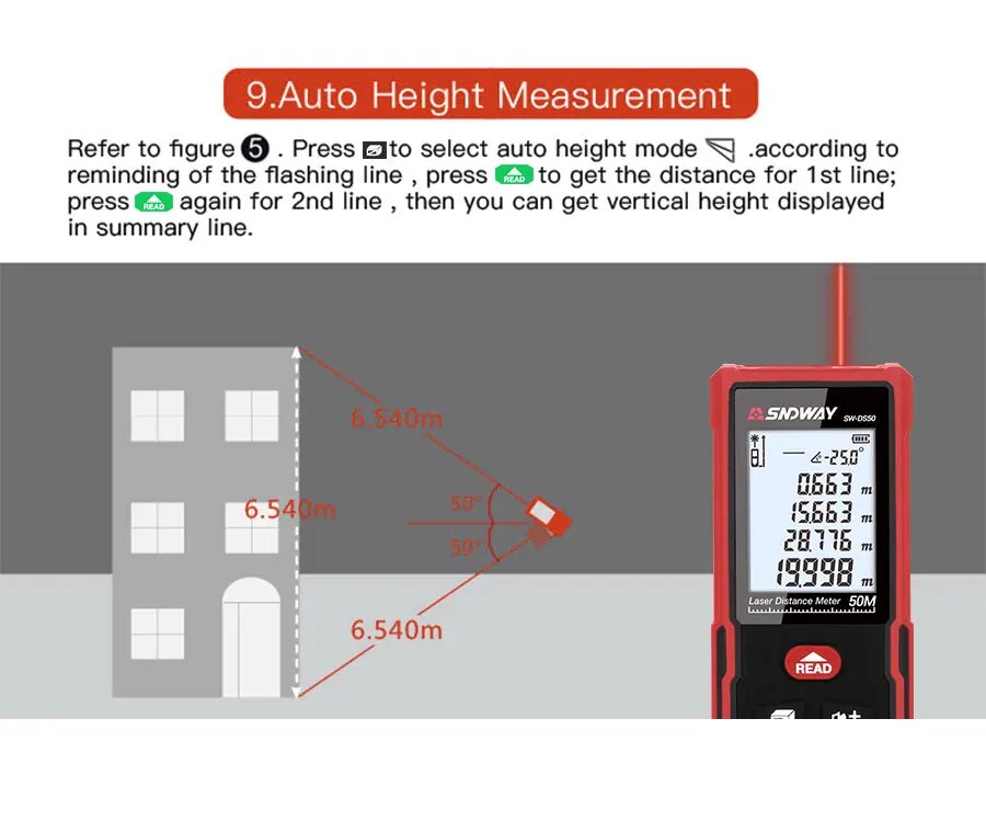 SNDWAY Лазерный дальномер, SW-DS50 интересное: