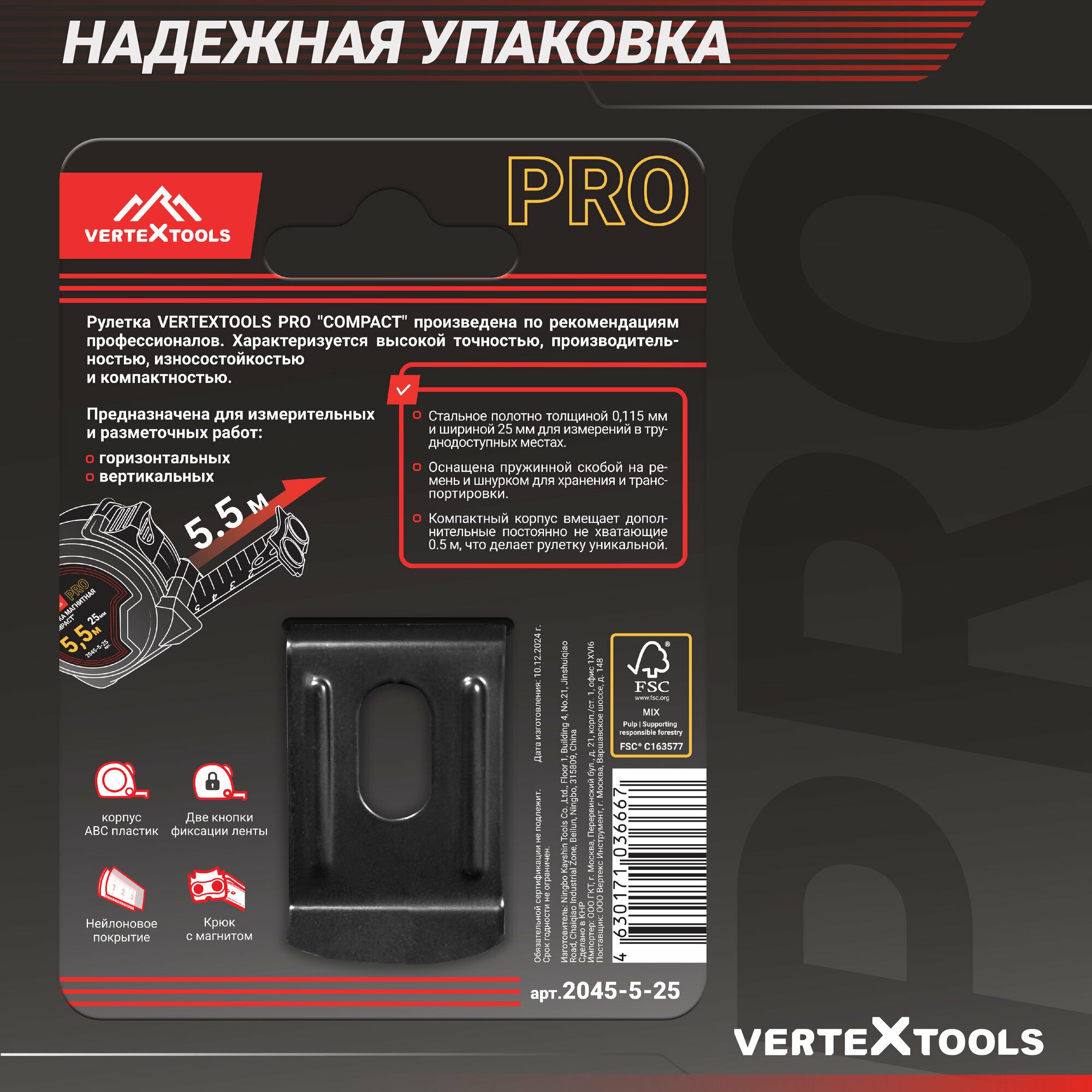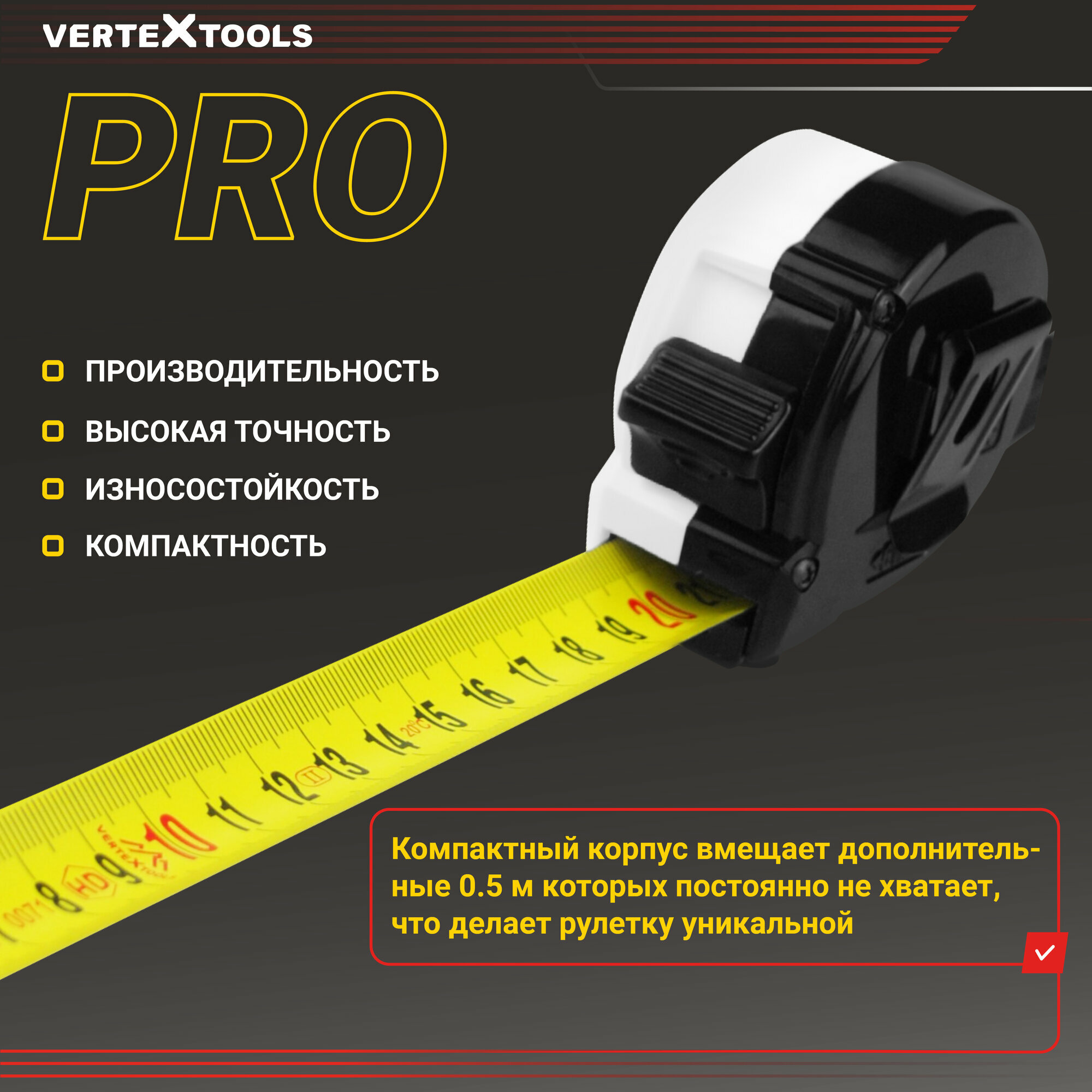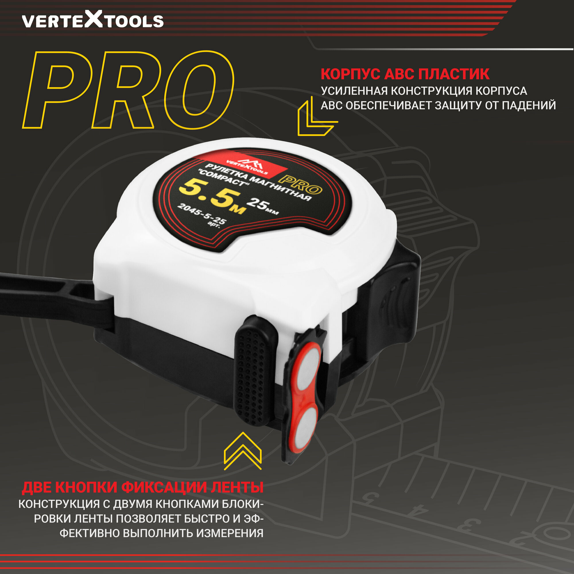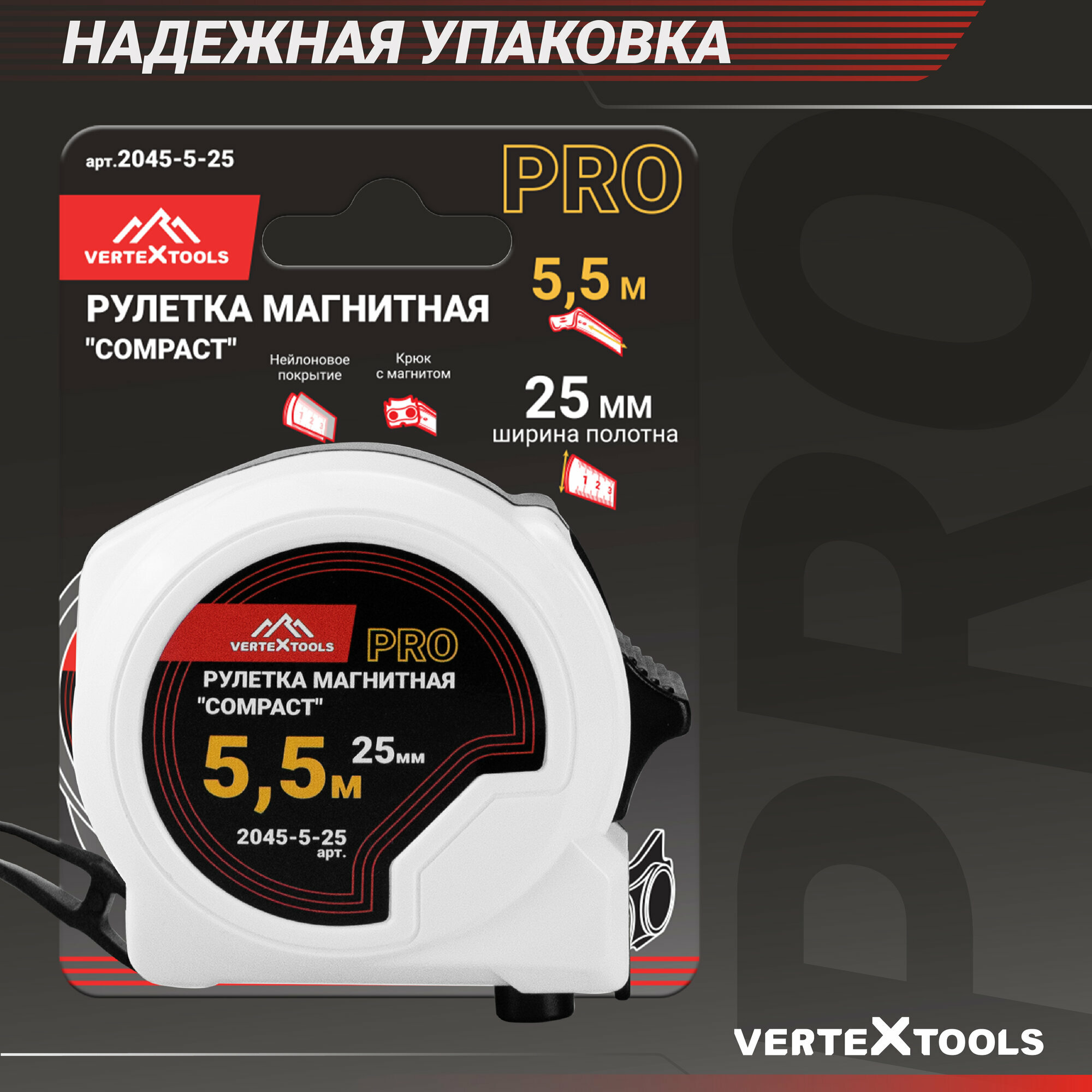 Рулетка измерительная VertexTools COMPACT 5.5 м x 25 мм, магнит, нейлоновое покрытие, усиленный корпус интересное: