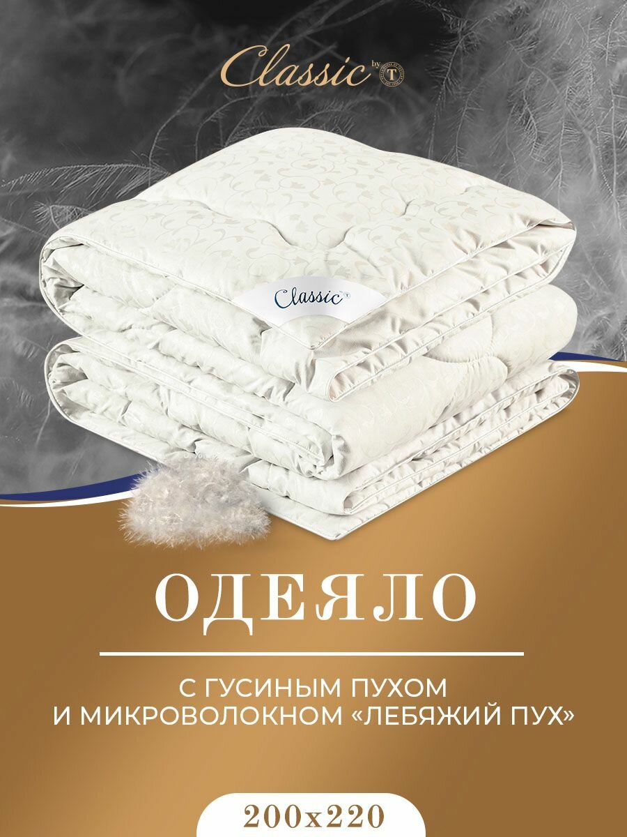 Купить Classic by T Одеяло евро, зимнее "Синти" теплое 1100 грамм, натуральный гусиный пух, микроволокно "Лебяжий пух", 200x220