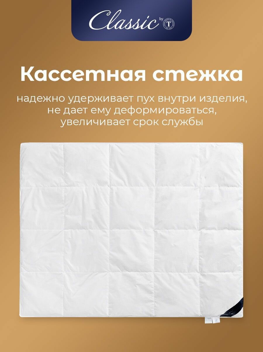 Classic by T Одеяло полуторное, зимнее "Синти" теплое 770 грамм, натуральный гусиный пух, микроволокно "Лебяжий пух", 140x205