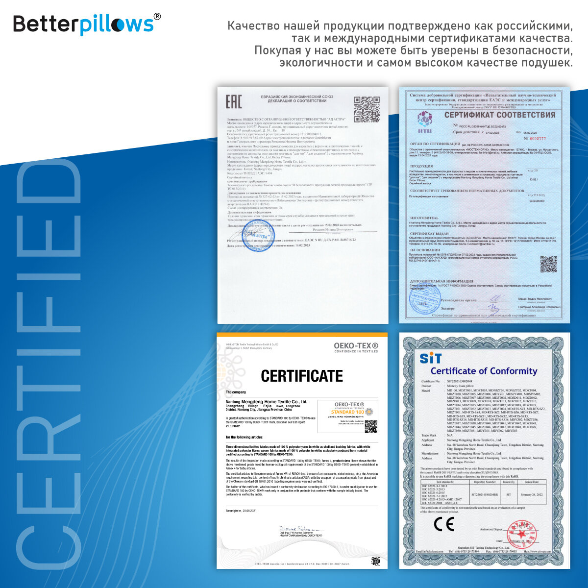 Ортопедическая подушка для сна Betterpillows "ICE COMFORT", Memory Foam, охлаждающий эффект 40х66 интересное: