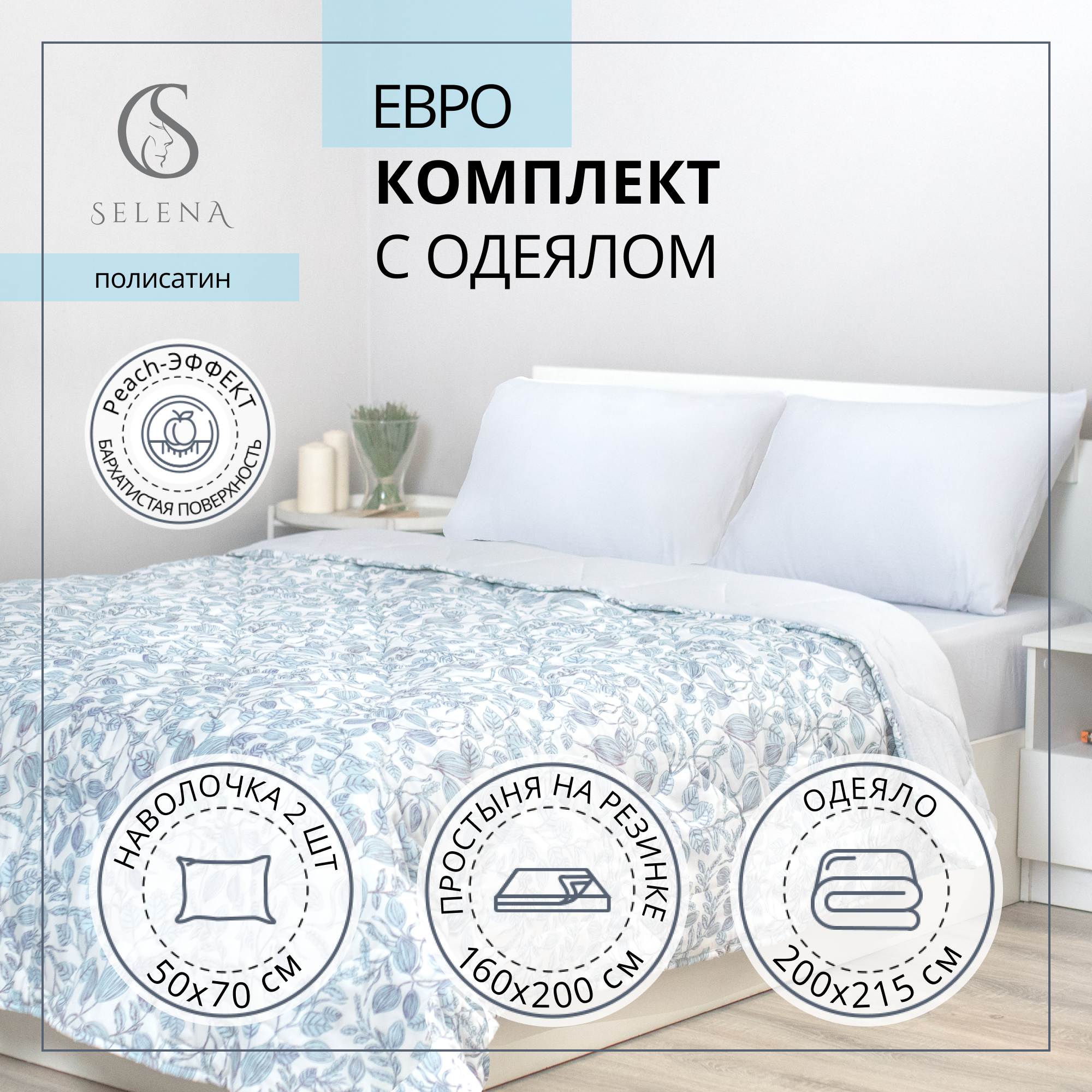 Комплект постельного белья с одеялом SELENA Берг евро из хлопка, полисатин, наволочка 2 шт