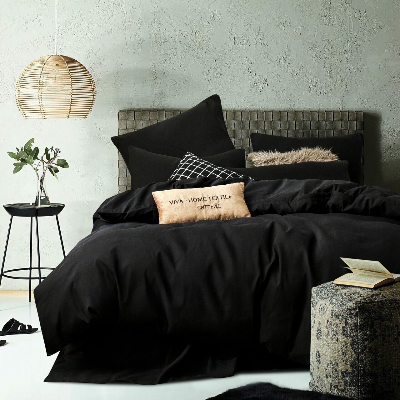 Комплект постельного белья ситрейд Евро чёрный, Сатин, наволочки 50x70, 70x70 по 2 шт.