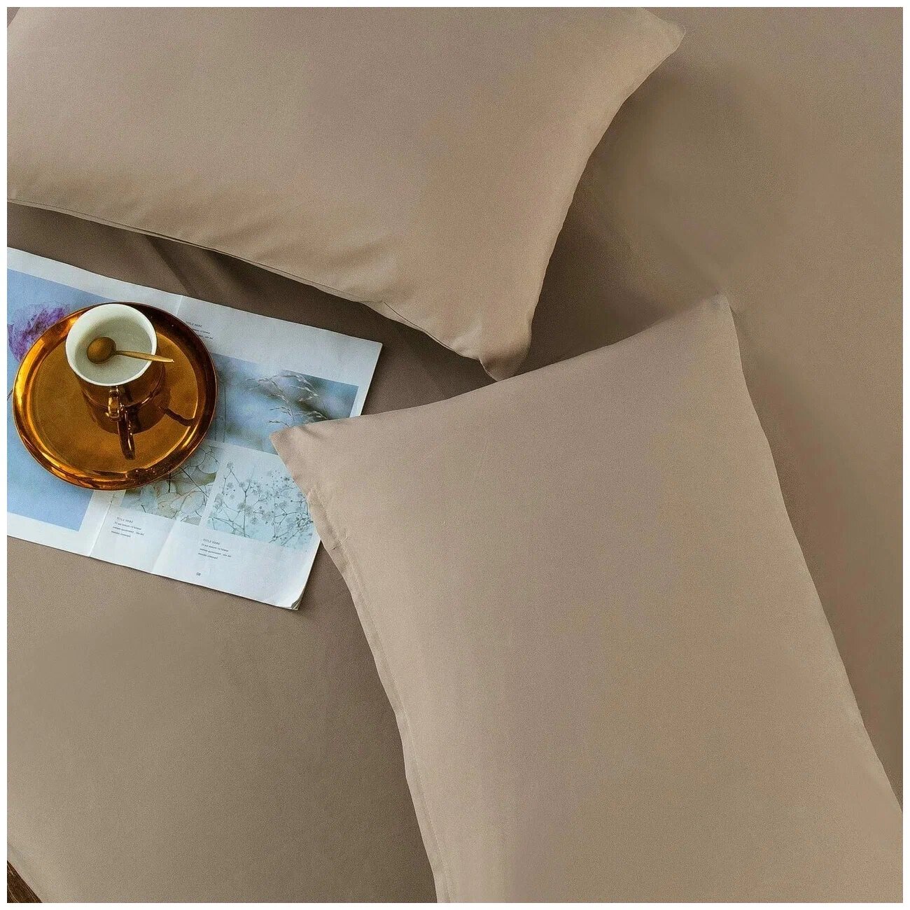 Комплект постельного белья ситрейд 2 спальный однотонный Какао, Сатин, наволочки 50x70 2 шт.