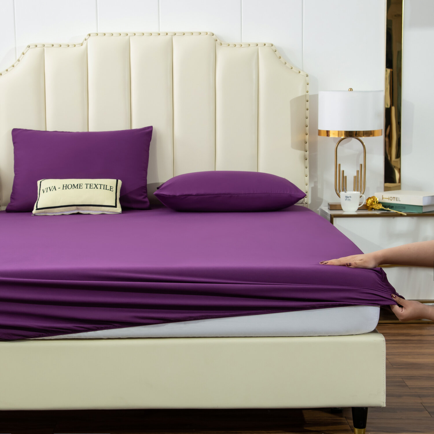 Комплект постельного белья ситрейд 1,5 спальный однотонный молочный, Сатин, наволочки 50x70 2 шт.