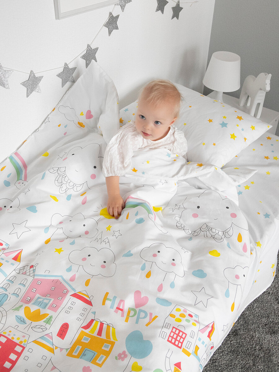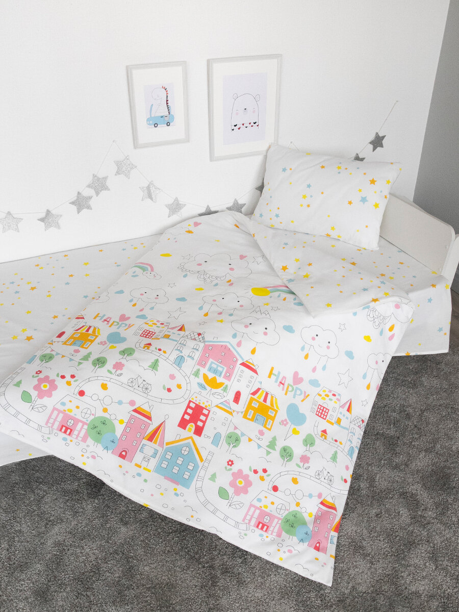 СохранитьПостельное белье детское на кровать 160х80, Tessolo Home, Поплин "Город игр" интересное: