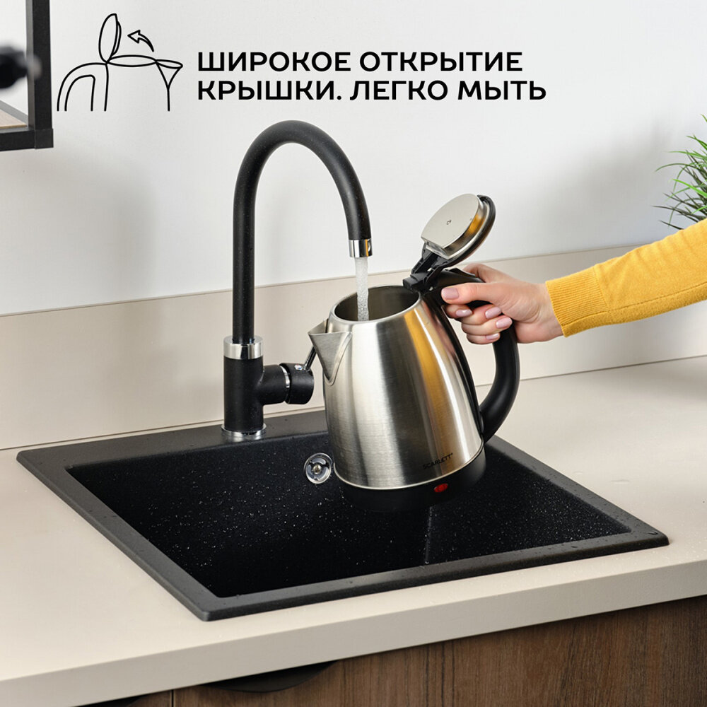 Чайник электрический SCARLETT SC-EK21S24, 1800Вт, нержавеющая сталь и черный