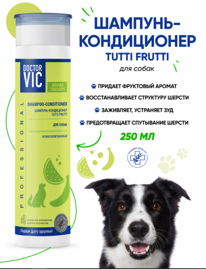 Шампунь-кондиционер Doctor VIC "TUTTI FRUTTI" для собак всех пород, флакон 250 мл.