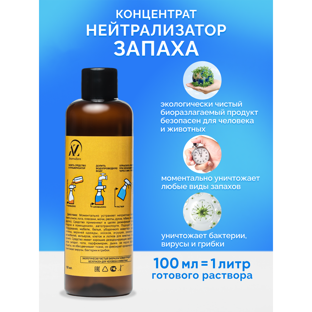 Нейтрализатор запаха от мочи Животных/ликвидатор запаха для кошачьего туалета , Концентрат Aromazero, Аромазеро, 100 мл