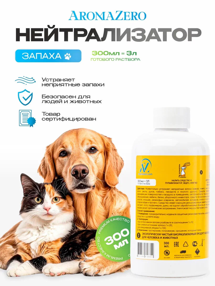 Купить Нейтрализатор запаха от мочи Животных. Ликвидатор запаха для кошачьего туалета AromaZero, Аромазеро 300мл = 3 литра готового раствора