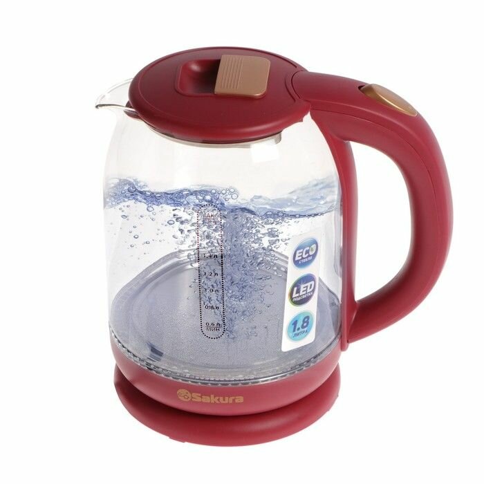 Чайник электрический Sakura SA-2709R, стекло, 1.8 л, 1800 Вт, бордовый