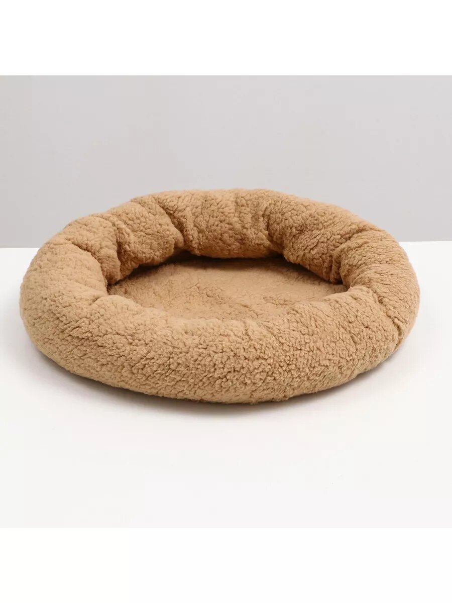 Лежанка для собак и кошек Уют, мягкий мех, 50 х 42 х 11 см, коричневая