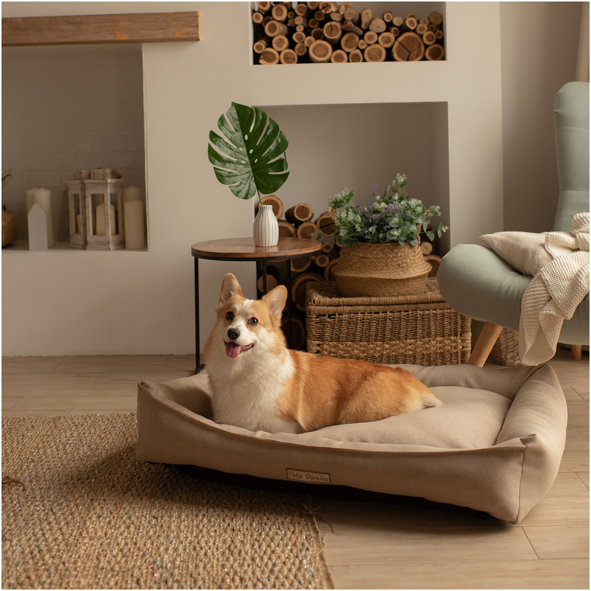 Лежанка для животных со съемным чехлом Pet's Parking, размер M 75x65, бежевая