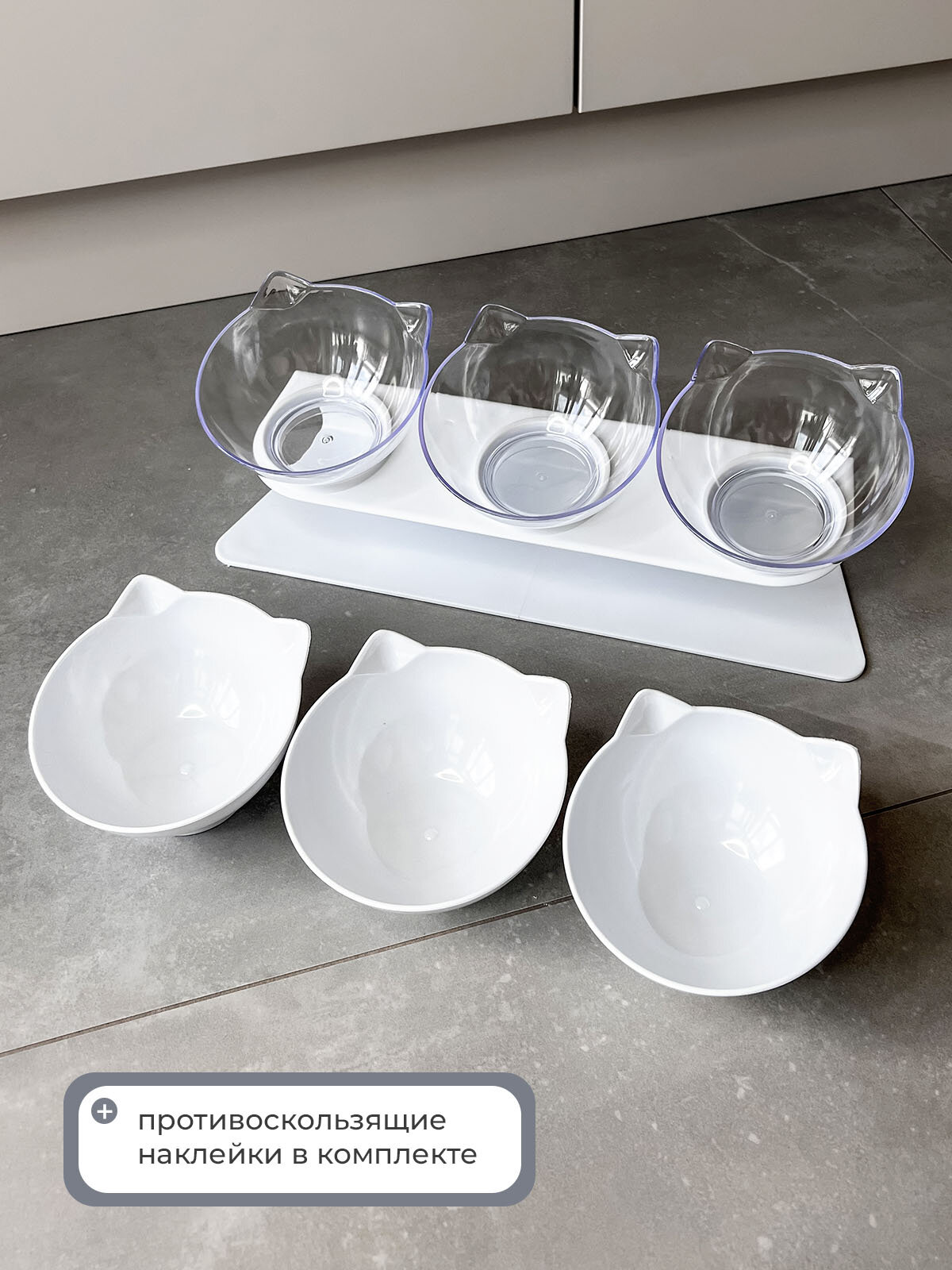 Миска для животных, кошек, собак тройная белая на подставке, сменные миски в комплекте интересное: