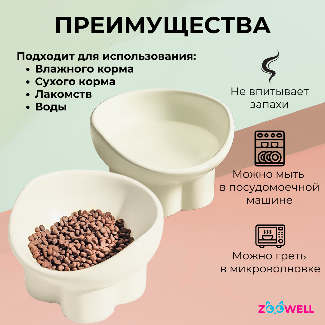 СохранитьМиска для животных ZooWell Aura с наклоном, 240 мл, цвет бежевый, керамика интересное: