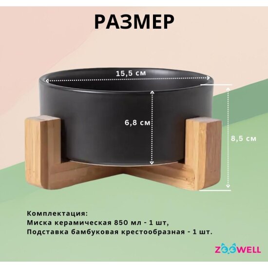 СохранитьМиска Zoowell Aura 850 мл, керамическая, одинарная, для корма и воды, на подставке, для животных, черный (ZWbowl12) интересное: