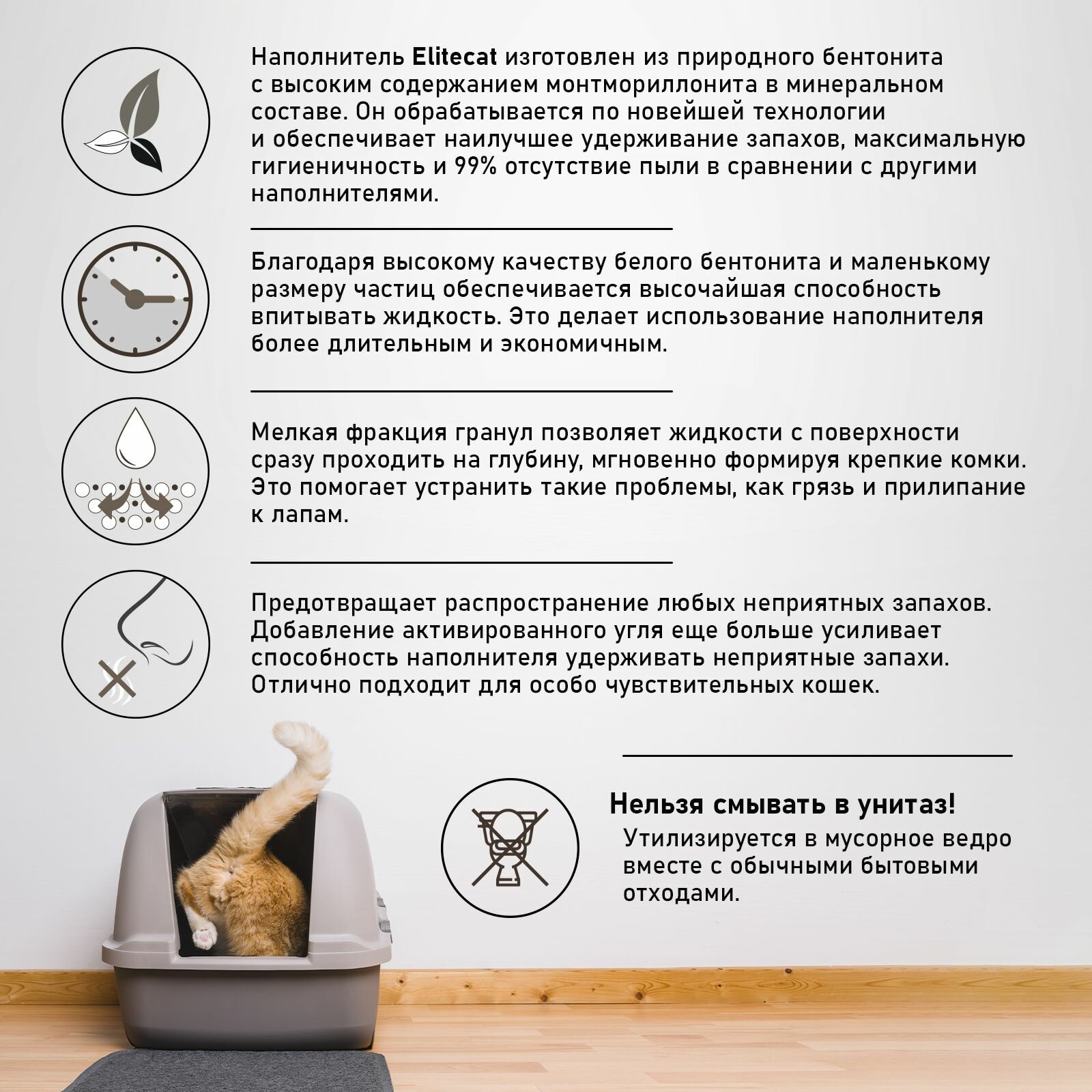 | Особенности | антибактериальный / ароматизированный / гранулированный / для котят / контроль запаха / с защитой от запаха |