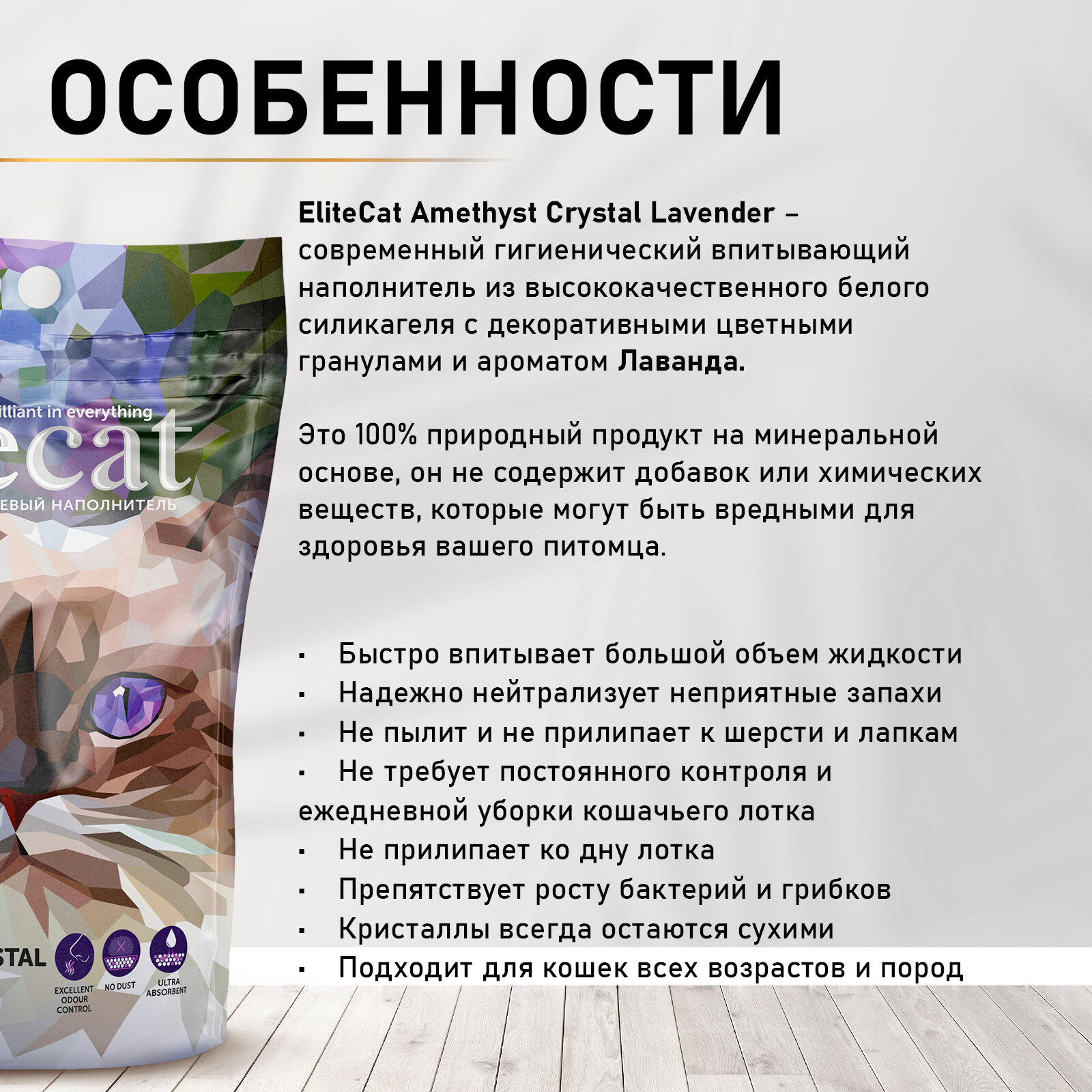 СохранитьELITECAT Наполнитель впитывающий силикагель "Crystal Lavender", 3.8л интересное:
