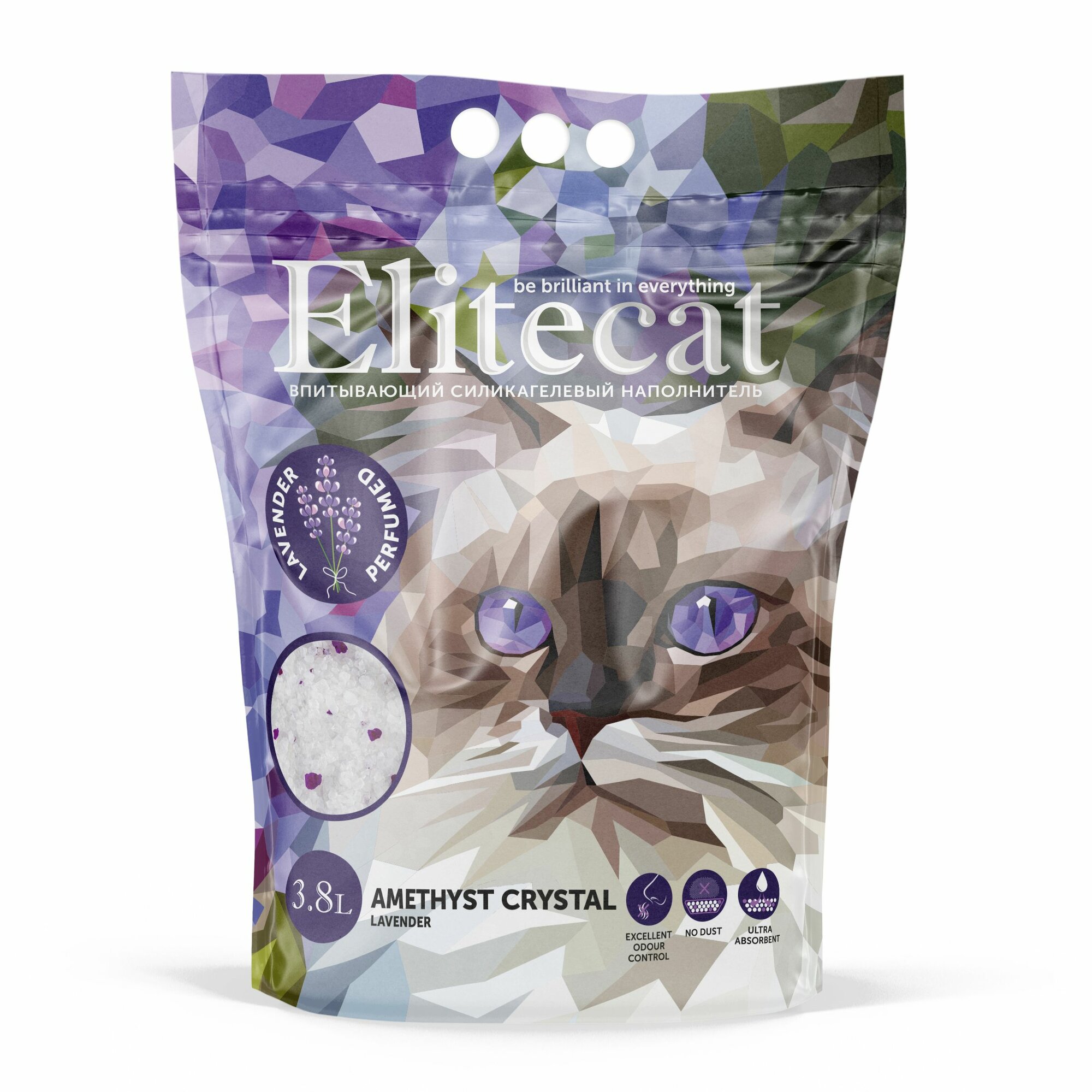 Наполнитель впитывающий силикагель ELITECAT "Amethyst Crystal Lavender", 3.8л